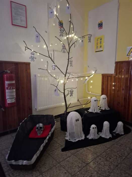 Ve čtvrtek 24. října 2024 naše škola uskutečnila oblíbenou akci s názvem Strašidelná škola. Úderem sedmnácté hodiny se tak vše zahalilo do ponuré atmosféry a tradiční výzdobu nahradily pavučiny, zapálené svíčky, na chodbách se objevili netopýři, pavouci, myši, ale také řada různých duchů a strašidel. Naši malí návštěvníci při setkáních s nimi museli zvládnout nejeden úkol, aby byli propuštěni dále. Za svou odvahu pak byli také náležitě odměněni.